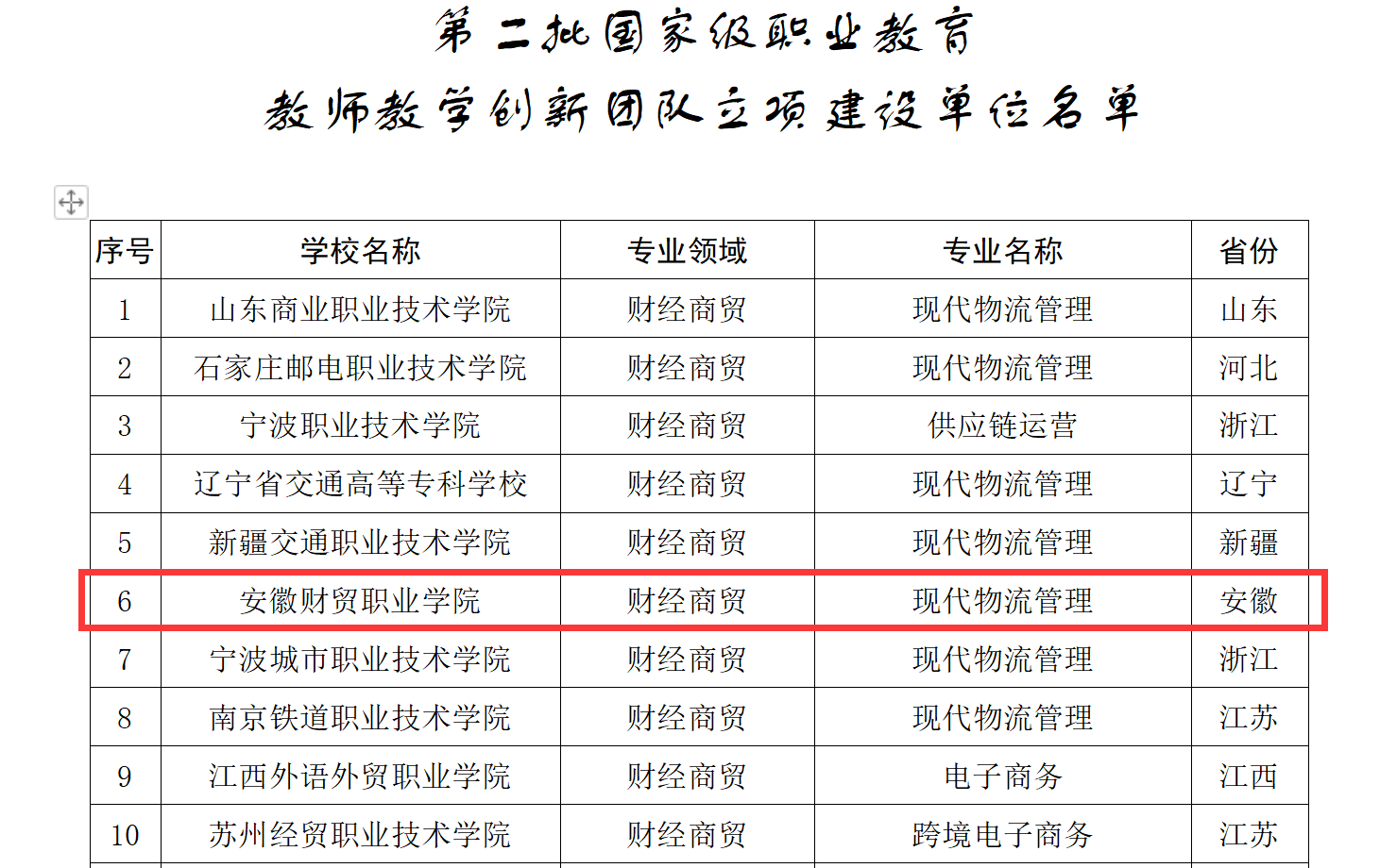8月16日,教育部正式发文公布第二批国家级职业教育教师教学创新团队立项建设单位和培育建设单位名单。我校申报的现代物流管理专业教学团队从全国多所学校中脱颖而出,成功获批立项建设单位,实现了国家级教学团队立项零的突破。