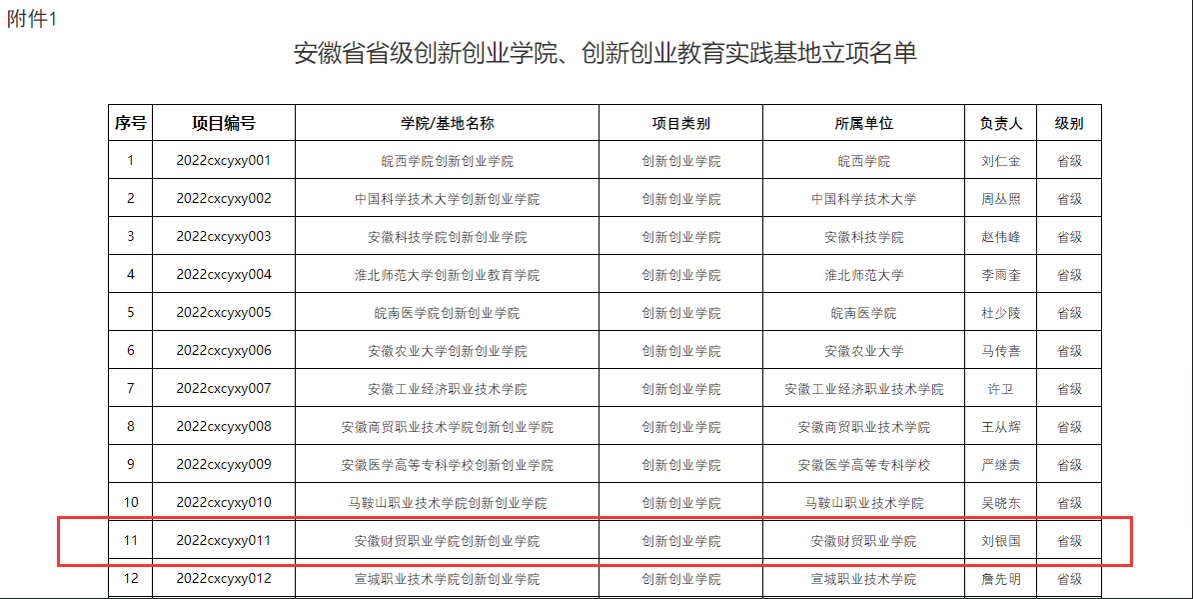 近日,《安徽省教育厅关于公布省级创新创业学院、省级创新创业教育实践基地名单的通知》公布,我校成功获评省级创新创业学院项目建设高校。