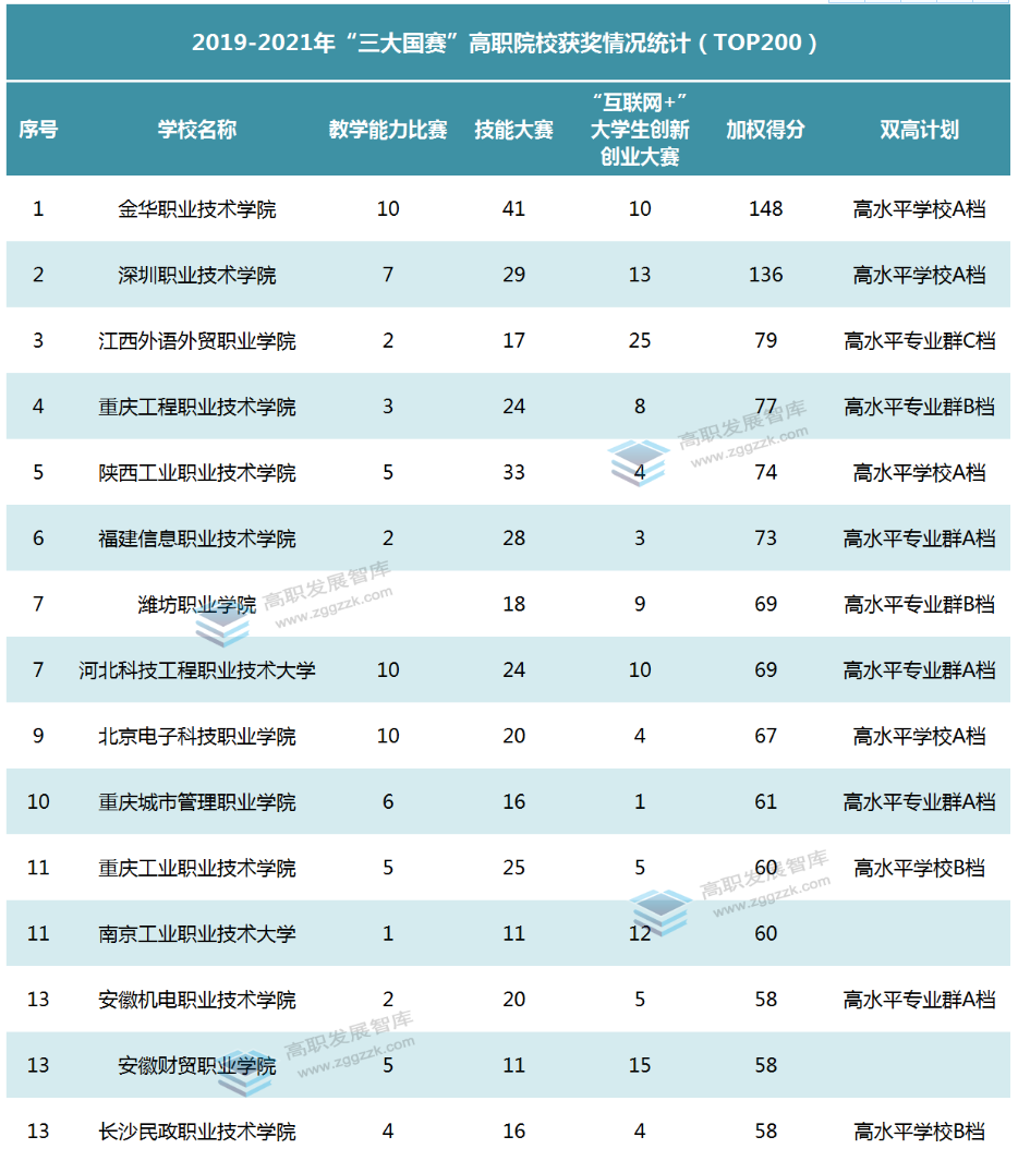 日前,高职发展智库盘点了2019年以来全国高职院校在全国职业院校技能大赛、全国职业院校技能大赛教学能力比赛、中国国际“互联网+”大学生创新创业大赛等三大国家级竞赛中的获奖情况,我校“三大赛”成绩亮眼,位居全国第13位、安徽省第1位,在非“双高”高职院校中位居第一,是全国前20位中唯一一所非“双高”高职院校。