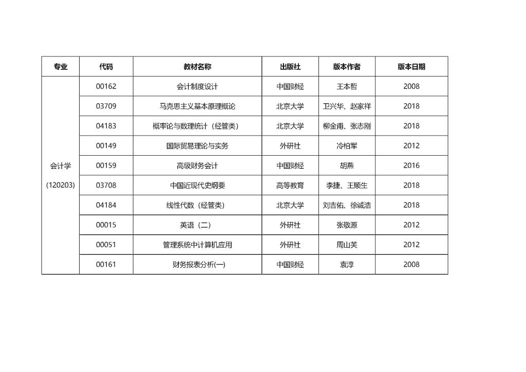 安徽省高等教育自学考试-安徽财经大学专业教材目录