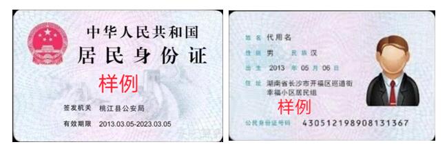 2. 本人有效居民身份证原件人像面和国徽面照片,照片要求身份证边框完整,字迹清晰可见,亮度均匀。