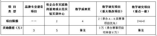 (6)教学研究项目(重大教学改革项目):承办大学生A、B类学科和技能竞赛项目按重大教学改革项目由竞赛承办单位申报。“承办省教育厅支持举办的A、B类学科和技能竞赛项目的单位或组织,可通过此项目申请给予承办项目的经费资助。承办受省教育厅委托的学科和技能竞赛所需经费由省教育厅适当补助。”