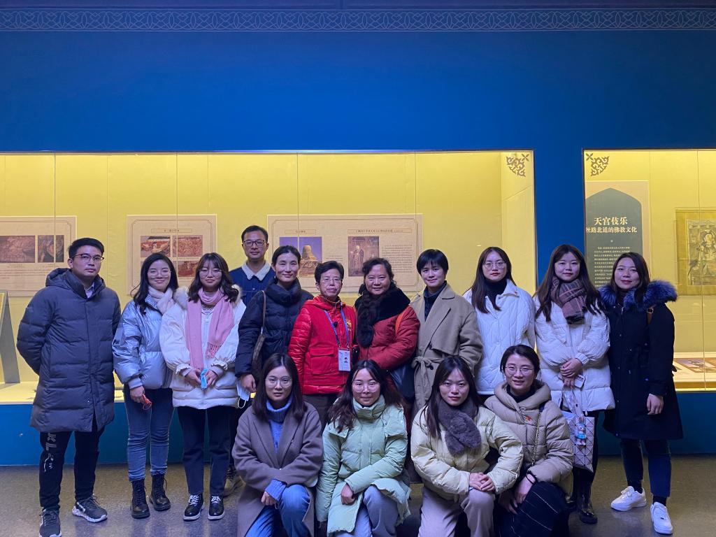 在志愿者讲解员的带领下,全体党员教师依次参观了“丝路雏形”、“丝路华章”、“丝路梵音”三个部分展区,全面了解了新疆作为中国古丝绸之路枢纽和东西方文化交流汇聚之地的历史发展变革。这些来自新疆的历史文物向世界证实,新疆各民族是中华民族大家庭的重要成员,新疆各民族文化是中华文明的重要组成部分。同时历史也在印证着只有依靠祖国的强大富足,新疆才能实现经济发展和社会民众安康,只有确保新疆的安定团结,新疆才有可能依托国家“一带一路”倡议发展契机,成为东西方经济贸易往来、文化交流融合的桥梁和枢纽,再现如汉唐盛世时期那般欣欣向荣、丰富多彩的繁盛景象。