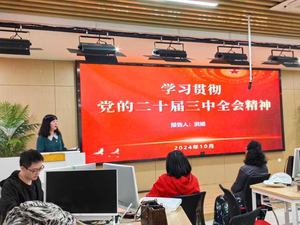 10月9日下午,为更好学习贯彻党的二十届三中全会精神,马克思主义学院党总支在实训楼A102智慧教室开展支部书记讲党课,教师第一党支部书记洪妮主讲题为《学习贯彻党的二十届三中全会精神》党课。