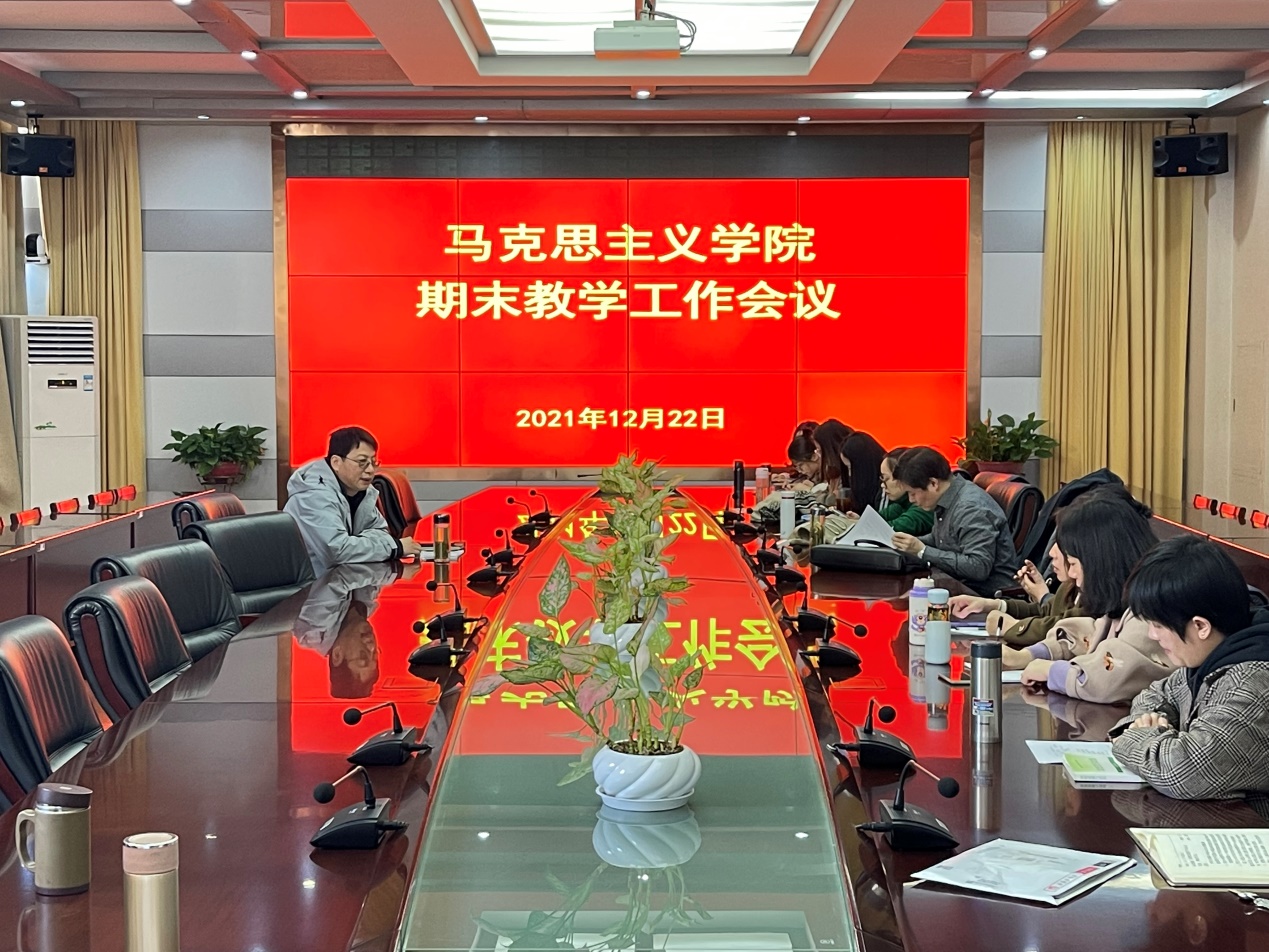 12月22日下午,马克思主义学院在行政楼第四会议室召开本学期期末教学工作会议。会议由王良斌院长主持,全体教职工参会。