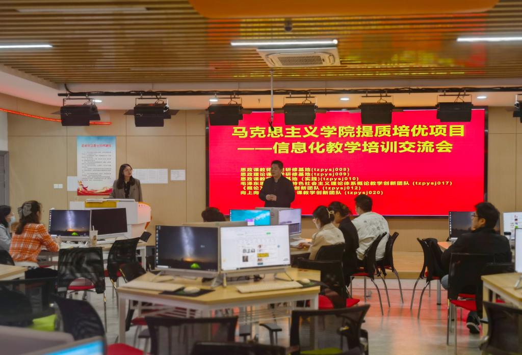 为加强思政课教学信息化建设,提升思政课教学的实效性,确保期末线上考试顺利开展,4月30日下午,马克思主义学院组织全体青年教师开展信息化教学培训会,会议由“概论”教研室主任张瑞琪主持。