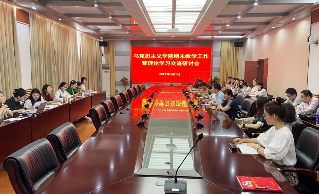 为了对马克思主义学院参与主办的全国“2022年马克思主义理论学术前沿系列讲座”进行总结交流,近日,马克思主义学院召开本学期期末教学工作暨理论学习交流研讨会议,全体教职工参会,会议由“概论”教研室主任张瑞琪主持。