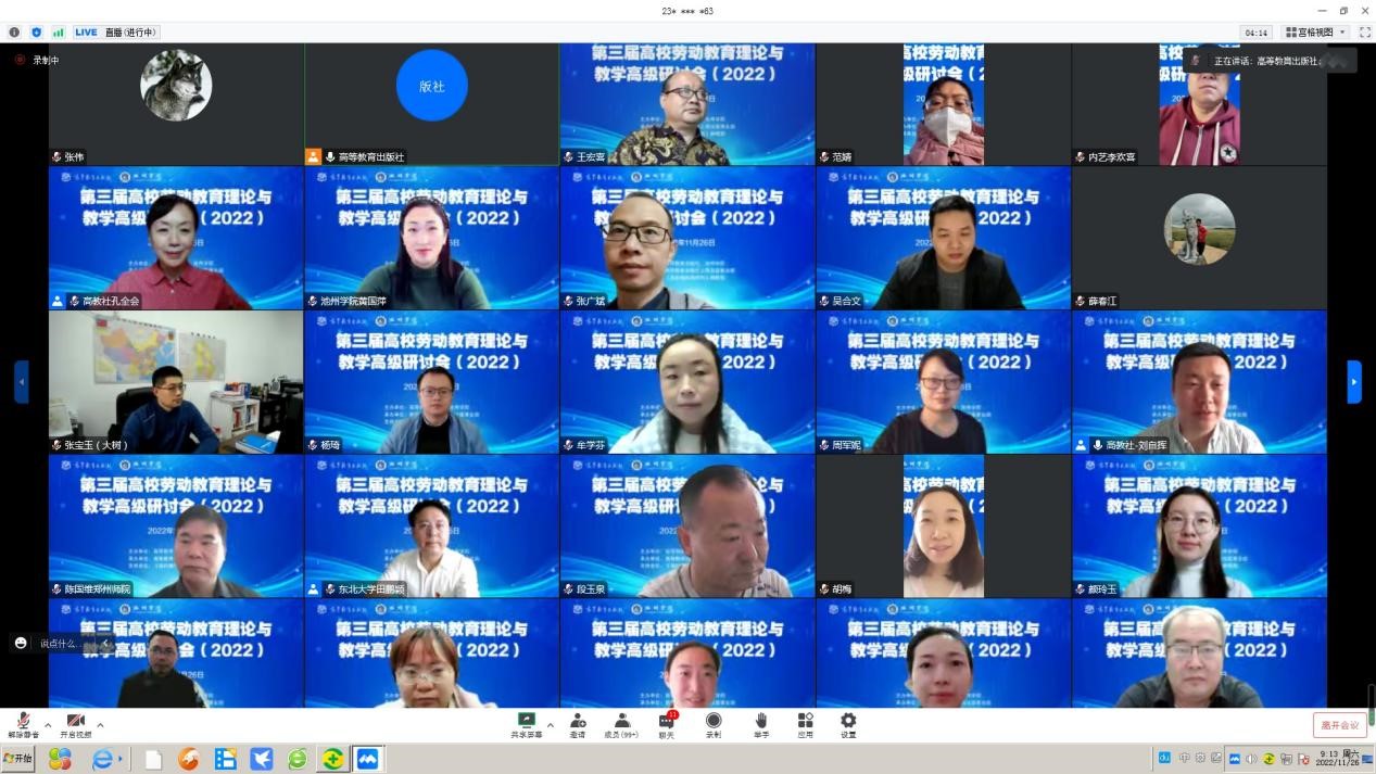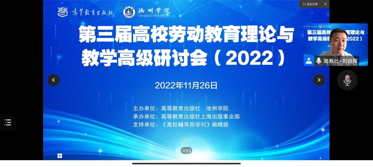 近日,高等教育出版社和池州学院组织召开了第三届劳动教育理论与教学高级研讨会,马克思主义学院《劳动教育》授课教师参加了线上会议。