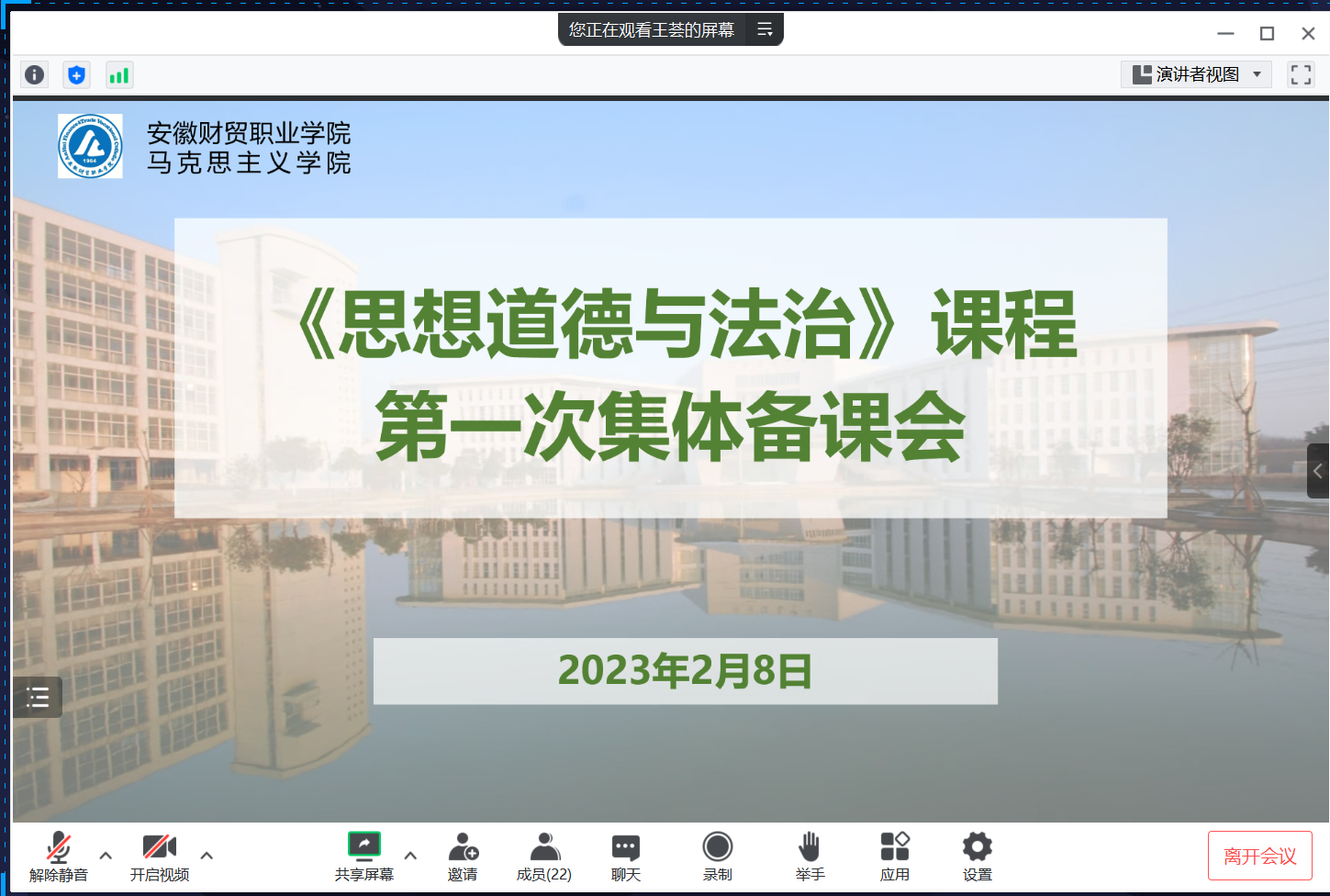 为提升“思想道德与法治”课程教学质量和教学效果,2月8日晚上,马克思主义学院在线上举行了“思想道德与法治”课程第一次集体备课会。备课会由教研室主任洪妮主持,马克思主义学院全体教师参加。