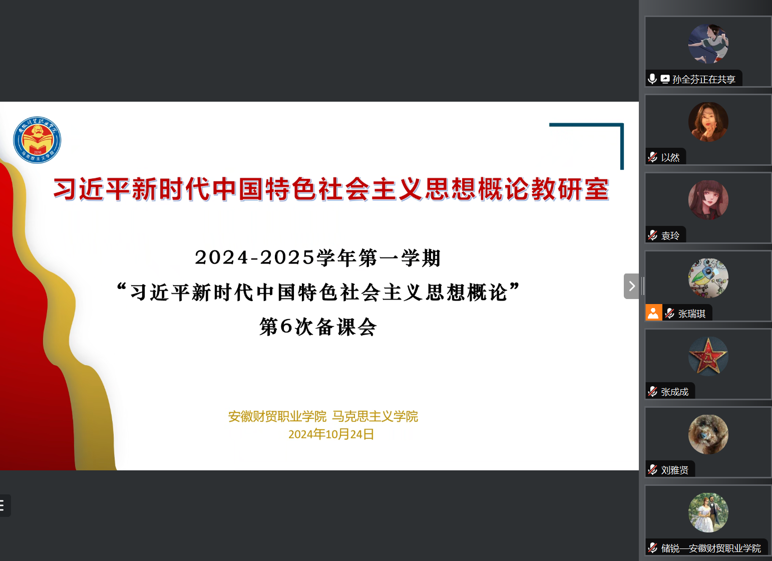 10月24日晚,习近平新时代中国特色社会主义思想概论教研室召开线上第六次集体备课会,会议由教研室主任张瑞琪主持,全体授课教师参加备课会。