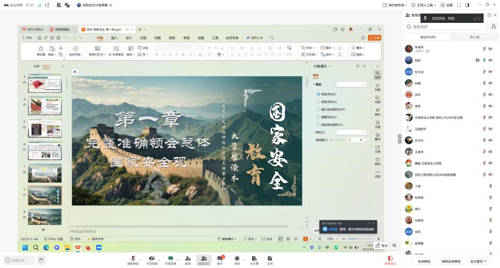 国家安全教育(形势与政策)教研室自8月20日起,持续开展备课创新活动,通过优化教学模式、强化师生互动,切实提升思政课育人实效。