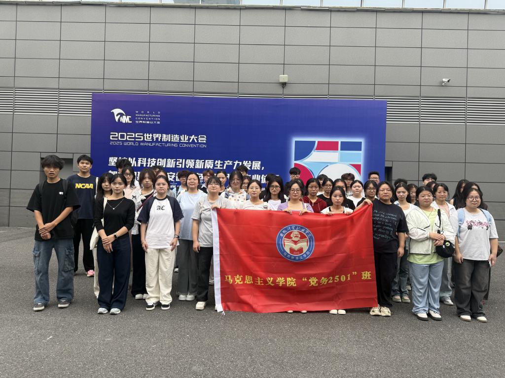 9月23日,马克思主义学院组织2025级党务工作专业全体新生赴合肥滨湖国际会展中心,参观第八届世界制造业大会核心展区。这场以智造世界·创造美好为主题的全球制造业盛会,为新生们提供了生动的思政实践课堂。
