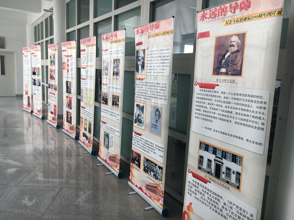 近日,马克思主义学院、党支部、“马哲研学提升工程”班共同策划举办纪念马克思诞辰200周年图片展,主题是“永远的导师”。在校师生近期可前往图书信息中心二楼展厅参观。