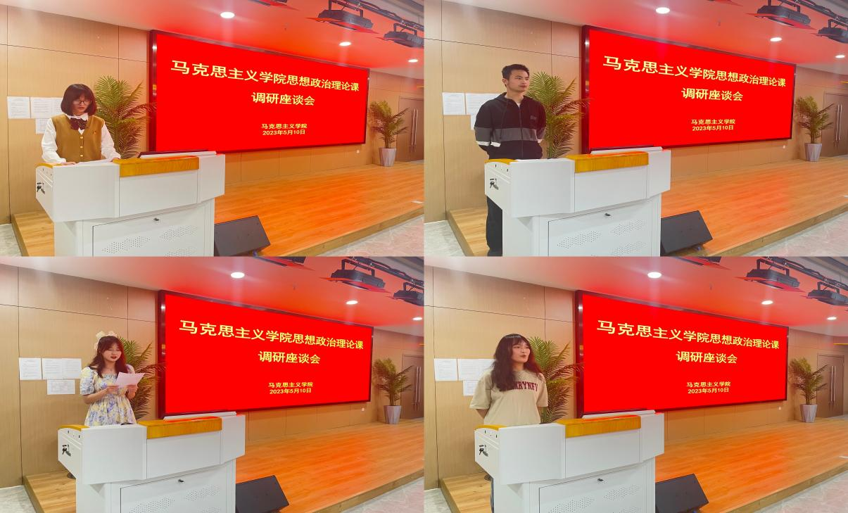 来自各学院思政委员代表苏子怡、王艳、陈悦悦、翟志铭分别对思想政治理论课程教学交流看法,对思想政治理论课程的进一步发展与完善提出了宝贵建议。
