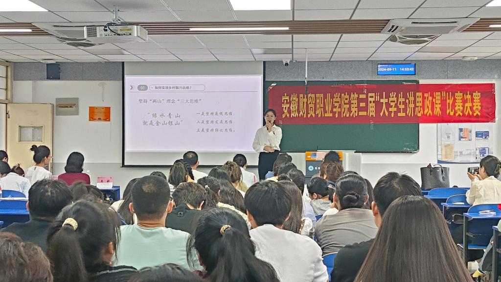比赛现场,选手们精神饱满,准备充分,根据选取的课程的相关章节或专题,以生动的案例、精准的数据和深入浅出地讲解,向评委和观众展示了他们对思政课内容的深刻理解和独到见解。在比赛过程中,评委们对选手们的表现给予了高度评价,最终,获得《习近平新时代中国特色社会主义思想概论》课程讲课第一名的是会计2308班孙虎;获得《思想道德与法治》课程第一名的是传播2303班夏雨露;获得《毛泽东思想和中国特色社会主义理论体系概论》课程讲课第一名的是商英2303班彭程;获得《形势与政策》课程讲课第一名的是传播2301班周宇欣。