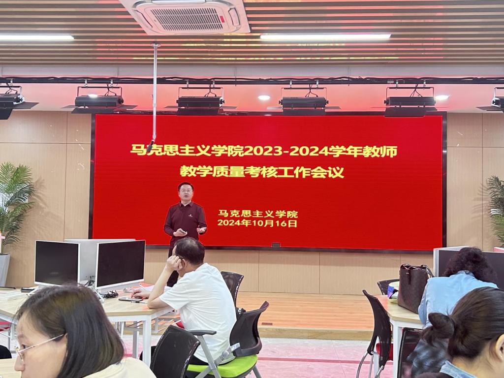 10月16日下午,马克思主义学院在新实训楼A102组织开展2023-2024学年度教师教学质量考核,全体专兼职教师参加。