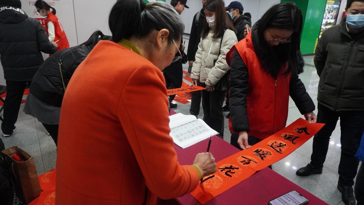 为传承中华民族的传统文化,营造幸福喜庆的节日氛围。1月18日、19日,bat365官方网站马克思主义学院与合肥轨道幸福坝区域站联合举办“墨韵新春启,福泽地铁传”送春联活动,邀请胡文传书画院知名书法老师在安医大二附院站、安大磬苑校区站两个站点为过往的乘客和市民送去了浓浓的新年祝福。