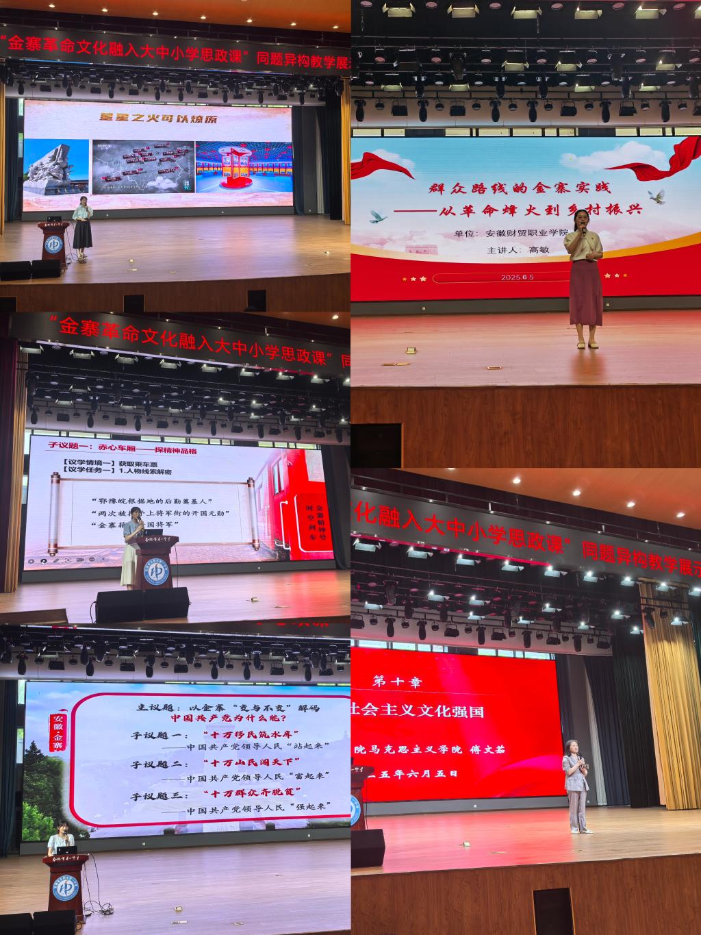活动采用"同课异构"形式,来自合肥市和平小学、合肥市四十八中滨湖校区、合肥一中瑶海校区、bat365官方网站和合肥师范学院的五位教师围绕金寨革命文化主题进行教学展示。我校高敏老师作为高职院校代表,创新性地将革命时期的群众路线与新时代乡村振兴实践相结合,通过案例分析和小组讨论,引导学生传承红色基因、践行使命担当。