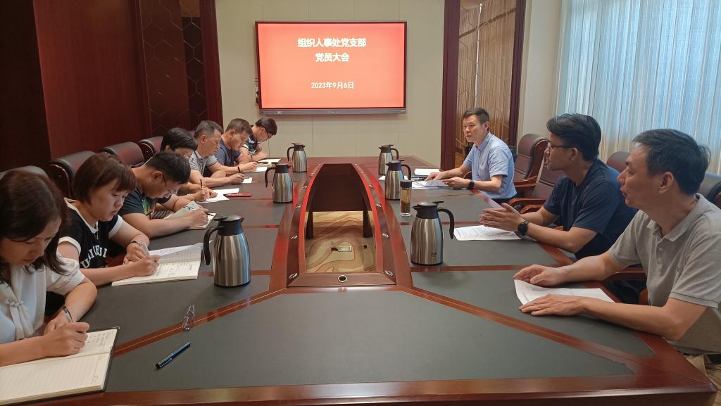 9月6日,组织人事处党支部召开党员大会,对学习贯彻习近平新时代中国特色社会主义思想主题教育专题组织生活会相关工作作部署。