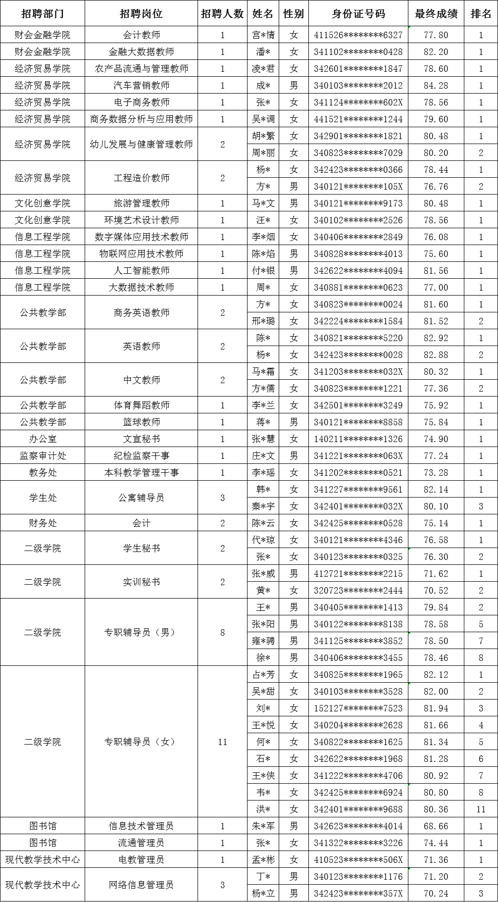 2021年度公开招聘聘用制人员第一批进入体检及考察政审人员的通知