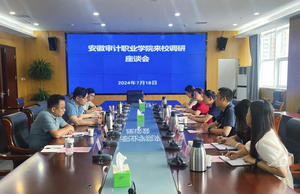 7月18日上午,安徽审计职业学院组织人事处处长韩成文一行来校调研交流。人事处和财会金融学院负责人以及相关科室人员参加交流座谈。