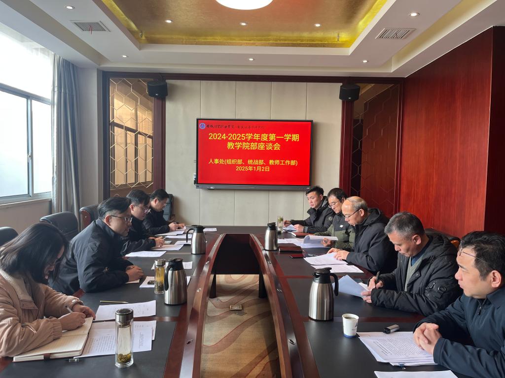 1月2日上午,人事处组织召开本学期人事人才保障工作交流会,人事处、各院部主要负责人和相关工作人员参加会议。