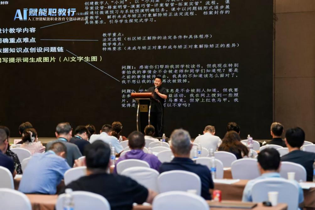面对生成式AI掀起的汹涌浪潮,胡杨再次勇立潮头,率先探索“人机横向协同、AI垂直应用”的教学改革新路径。他主持的省级重点教研项目,聚焦于构建AI时代教师亟须的数字素养能力框架。其开发的人工智能教学垂直应用培训课程,在多所院校宣讲推广,有效赋能了教师群体。胡杨老师更应邀在教育部职业院校信息化教学指导委员会主办的“AI赋能职教行”专题培训中,作了题为《从五个维度看AI在课堂教学中的垂直应用》的精彩报告,获得高度评价,显著提升了职业院校教师在人工智能领域的认知深度与应用能力,为应对智能化教育转型贡献了智慧方案。