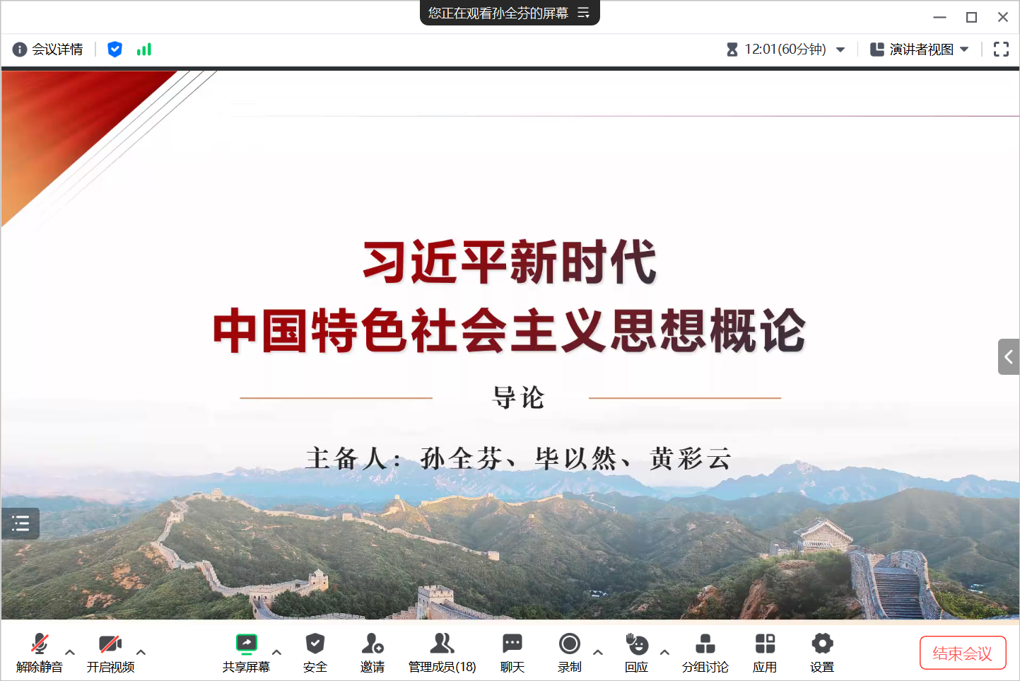 为提高课程教学质量,习近平新时代中国特色社会主义思想概论教研室于1月26日召开了线上第一次集体备课会,该门课程全体授课老师参会。