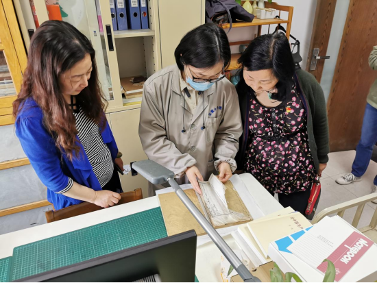 王永平一行先后参观考察了古籍阅览室、古籍善本库、民国及外文经典书库,现场参与体验了古籍雕版印刷和线装装订流程,双方就精品书库空间建设、特色资源建设和过刊收藏利用等内容进行了深入沟通。
