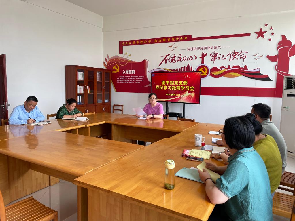 为进一步强化纪律教育,促进党员干部增强纪律意识,根据《bat365官方网站党纪学习教育工作方案》要求,结合图书馆党支部党纪学习教育学习计划安排,6月18日下午,图书馆党支部在党员活动室召开了严守“六大纪律”筑牢思想根基专题学习会。