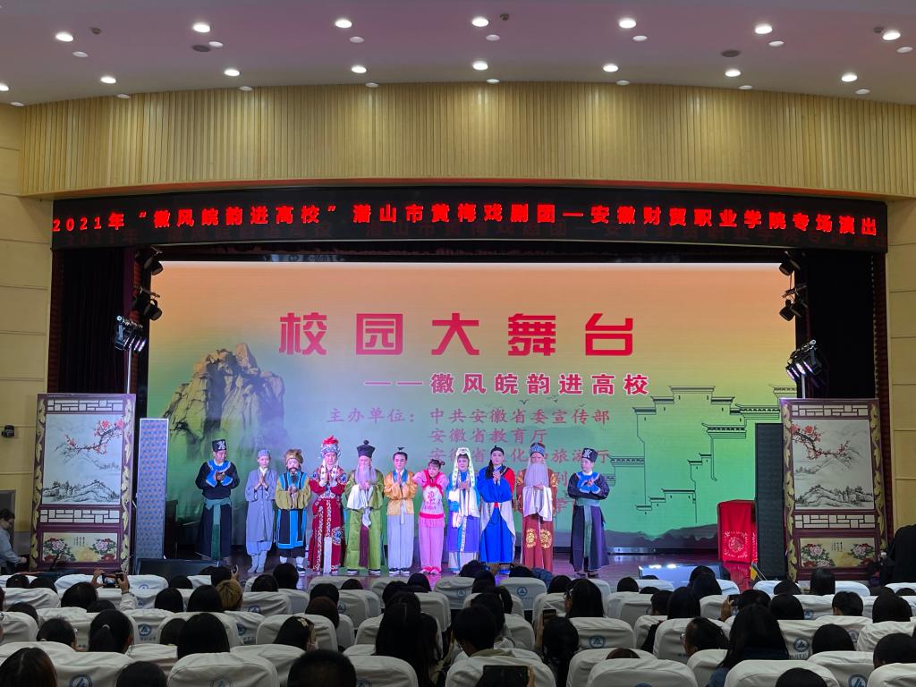 10月18日晚,由省委宣传部、省教育厅、省文化和旅游厅共同主办的“校园大舞台——徽风皖韵进高校”活动走进我校。安庆市黄梅戏艺术剧院的艺术家们用精彩的表演为我校师生带来了大型古装黄梅戏《双插柳》,现场300余名师生共同感受了中国传统戏曲文化的魅力。