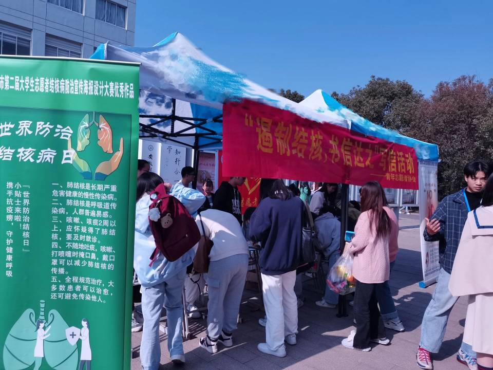 11月19日至20日,校团委、青年志愿者协会联合肥西县疾控中心在学校食堂东门开展了“遏制结核,书信达之”主题宣传活动。