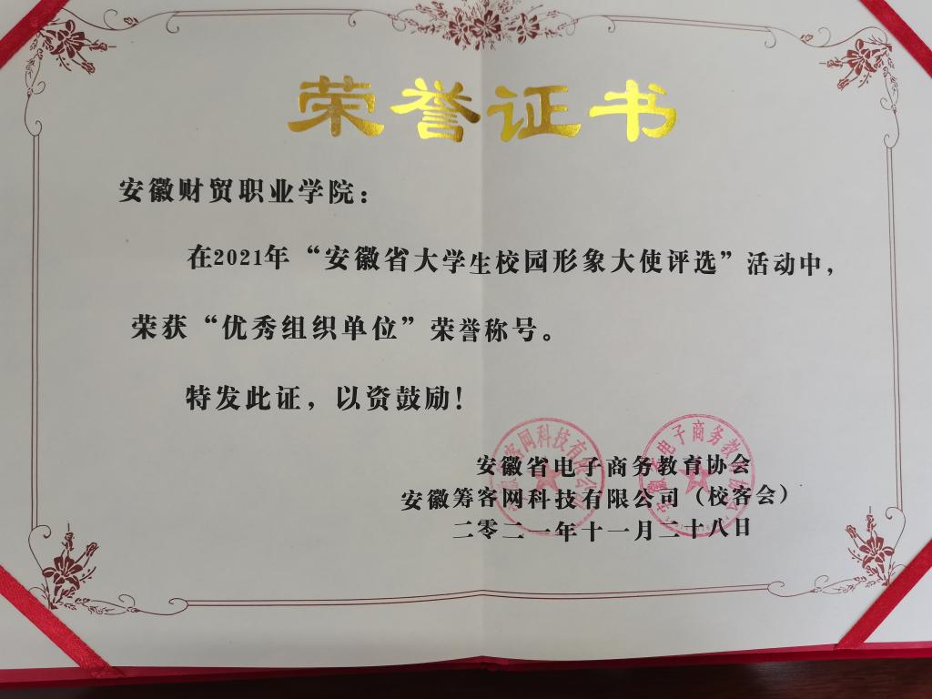 11月28日,由安徽省电子商务教育协会主办与安徽筹客网科技有限公司(校客会)联合主办的校客会2021安徽省大学生校园形象大使活动总决赛在合肥职业技术学院圆满落幕。我校经济贸易学院连锁2002班的吴文婷同学荣获冠军。