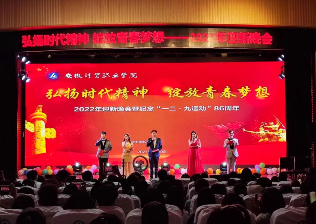 12月9日晚,校团委在学校学术报告厅举办“弘扬时代精神·绽放青春梦想”2022年迎新晚会暨纪念“一二·九运动”86周年。学生处处长刘葆、财会金融学院党总支书记胡宏萱、公共教学部党总支副书记何步新、学生处副处长濮光宁、校团委副书记左艳琼以及各院部团总支书记、专职辅导员和同学们齐聚一堂,共享艺术盛宴。
