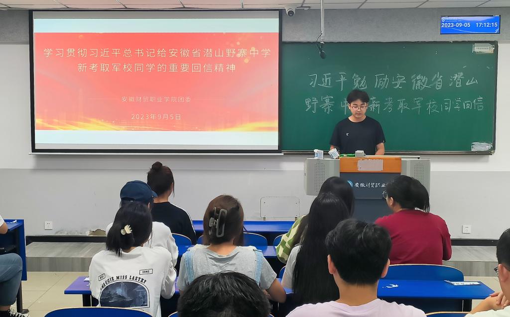 95日,校团委举办学习贯彻习近平总书记给安徽省潜山野寨中学新考取军校的20名同学的重要回信精神交流分享会,全体团学干部参加会议并作交流发言。