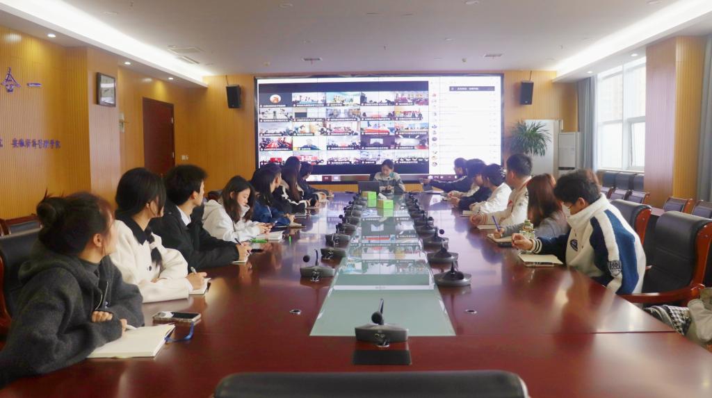 1115日上午,共青团安徽省委、安徽省学生联合会召开全省学联学生会组织专题会议,学习采取线上线下相结合形式,主会场设在黄山学院,各地市学联和各高校设分会场。校团委组织校院两级学生会主席团成员在行政楼204会议室通过视频会议进行线上观看。