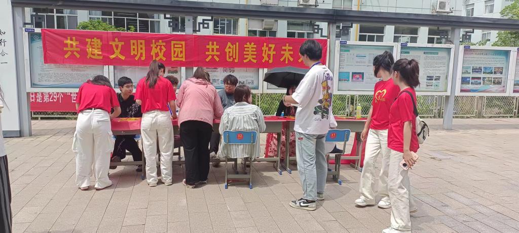 4月25日中午,学生处、校团委在西教学楼宣传橱窗前开展了第十七个安全卫生文明月签字活动,旨在进一步提升大学生的整体素质,养成良好的个人卫生习惯,自觉维护宿舍卫生,大力营造和谐美好的校园环境,促使学生身心全面发展。
