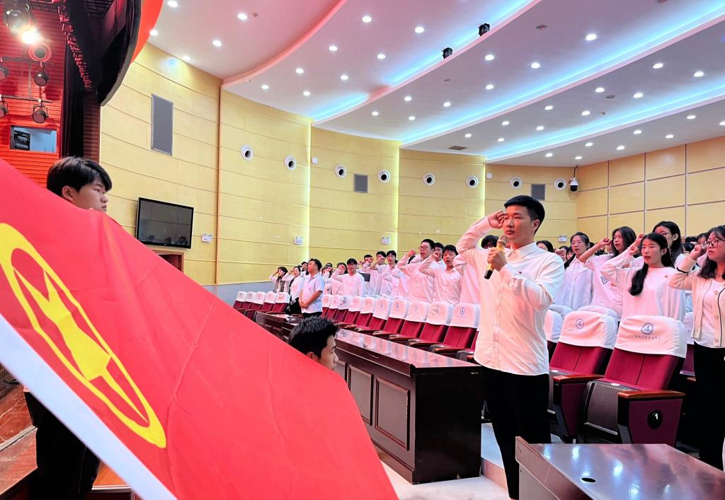为深入贯彻落实习近平总书记关于青年工作的重要思想,强化共青团仪式教育,为新发展团员上好“入团第一课”,10月10日中午,bat365官方网站在学校报告厅举行2023-2024学年度第二学期新团员入团仪式,学生处处长廖步岩、校团委副书记刘成、学生发展中心主任孙峻峰、各二级院部团总支书记、团干以及校学生会团委、二级院部主席团成员与学生兼职副书记等参加会议。