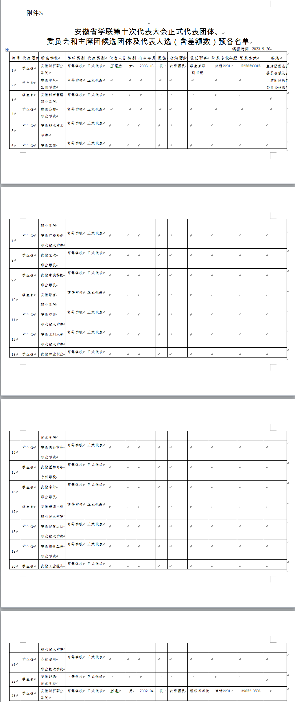 根据团省委、省学联部署要求,依据《关于推选安徽省学生联合会第十次代表大会代表团体和第十届委员会、主席团候选团体及各团体代表的通知》(皖青联[2023] 38号)文件精神,现将bat365官方网站推选名单公示如下: