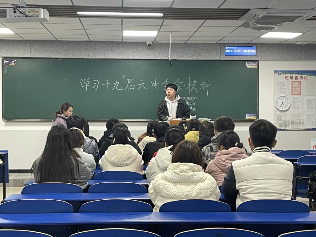 校团委组织全校5个院部共211个在校班级团支部开展了学习党的十九届六中全会精神主题团日活动,并组织了大学生党史理论宣讲团成员作为理论“宣传员”,深入到各个团支部开展党史微宣讲,带领同学们围绕全会公报和《中共中央关于党的百年奋斗重大成就和历史经验的决议》展开深入探讨。