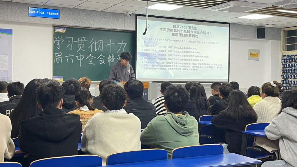 11月18日至12月5日,校团委组织团员青年学习党的十九届六中全会精神。校团委通过支部学习、理论宣讲、青马工程培训班课程、主题团日、口语训练等多种形式,全面系统学习领会党的十九届六中全会精神,迅速形成学习宣传贯彻全会精神的热潮。