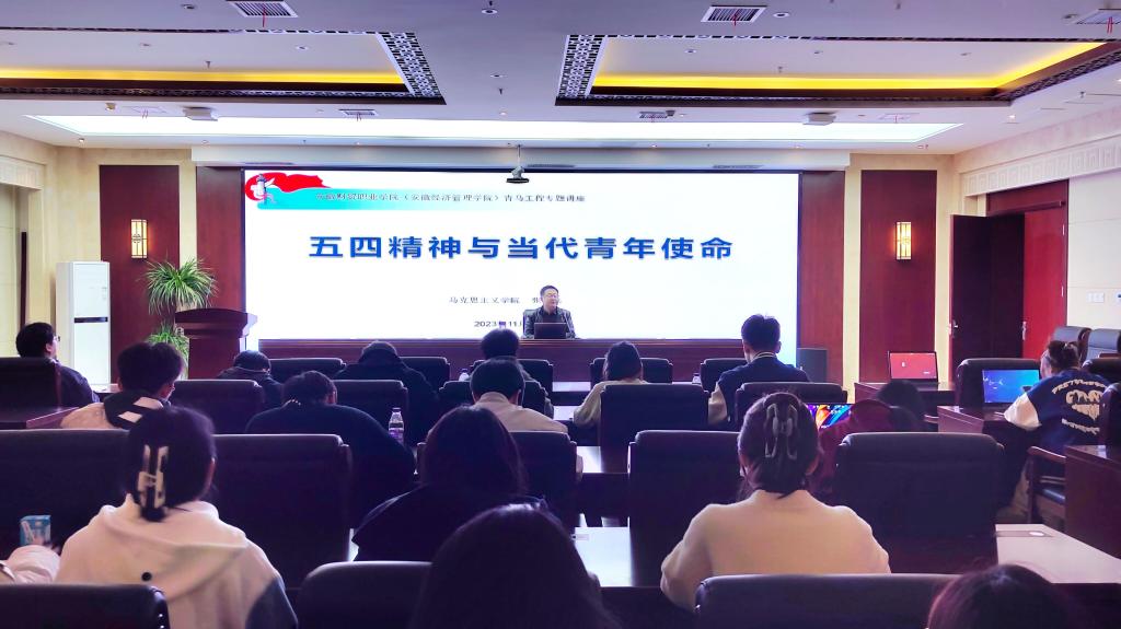 1121日晚,2023青马工程大学生骨干培训班第三场报告会在行政楼311会议室举行,会议邀请到马克思主义学院副院长张少兵作题为《五四精神与当代青年使命》的专题报告。
