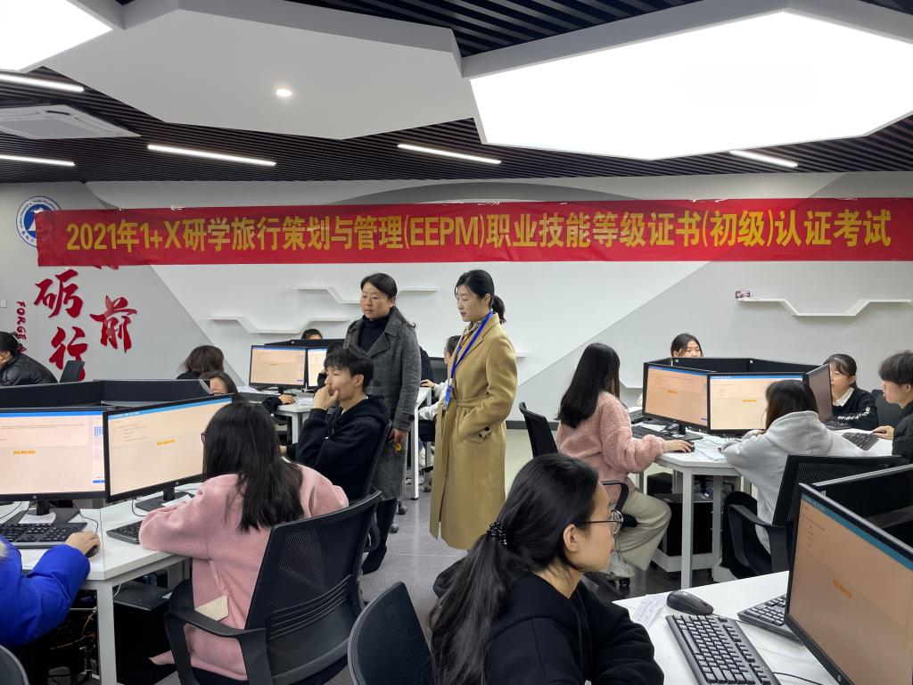 为深入贯彻落实《国家职业教育改革实施方案》精神,积极开展1+X证书制度试点工作,11月27日,文化创意学院茶旅教研室顺利组织“2021年1+X职业技能等级证书(初级)研学旅行策划与管理(EEPM)”认证考试。文化创意学院高静副院长细致地进行考点巡视,旅游管理与酒店管理专业专任教师及实训秘书参加了考务工作,确保了本次考试的顺利进行。