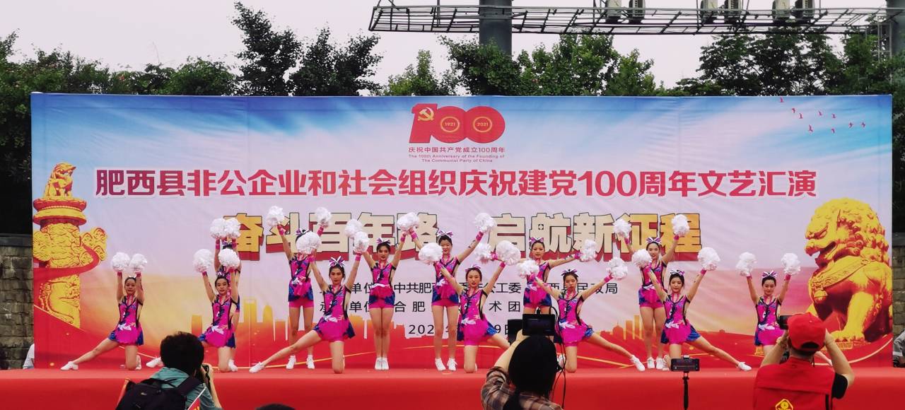2021年6月,肥西县委非公工委和县民政局在上派镇古埂公园举办“肥西县非公企业和社会组织庆祝建党100周年文艺汇演”。基于文化创意学院与肥西县柿树岗乡党建共建及校地合作的长期伙伴关系,积极参与柿树岗乡乡村振兴建设,文化创意学院选送《啦啦操》歌伴舞节目助力柿树岗乡乡村振兴产业发展协会参加本次文艺汇演并获得三等奖。