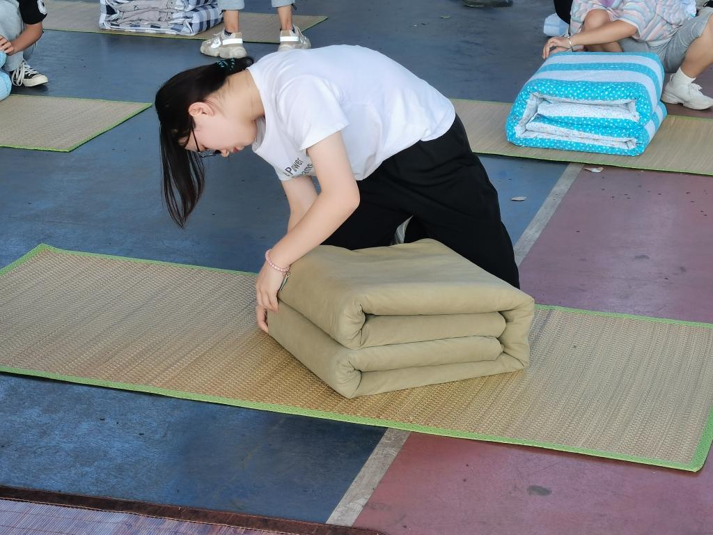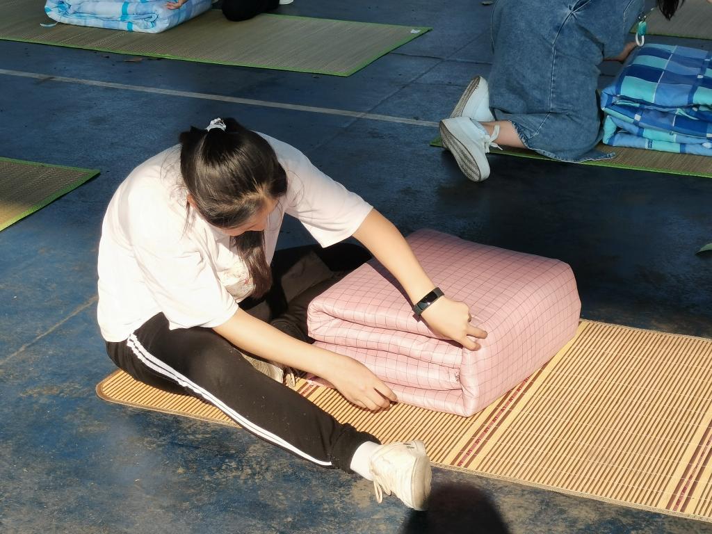 同时,宿管部和权益维护部在风雨操场展开了新生叠军被大赛。经过班级推荐、院部初选等环节,本次共有20名选手参加了决赛。各参赛者“平铺,横折,捏线,竖折,修边,扯角”等各个动作做的有条不紊,得心应手。比赛现场,气氛紧张,每个同学都一丝不苟,不甘落后,各展身手,他们娴熟的动作赢得现场观众的阵阵掌声。经过选手激烈的角逐和评委细心的评比,陈静媛、王林森、马如意、王中尚、王晴晴、许闯、方俊、田红亮、张宇涛、叶润东十位同学荣获“叠军被十佳能手”称号。