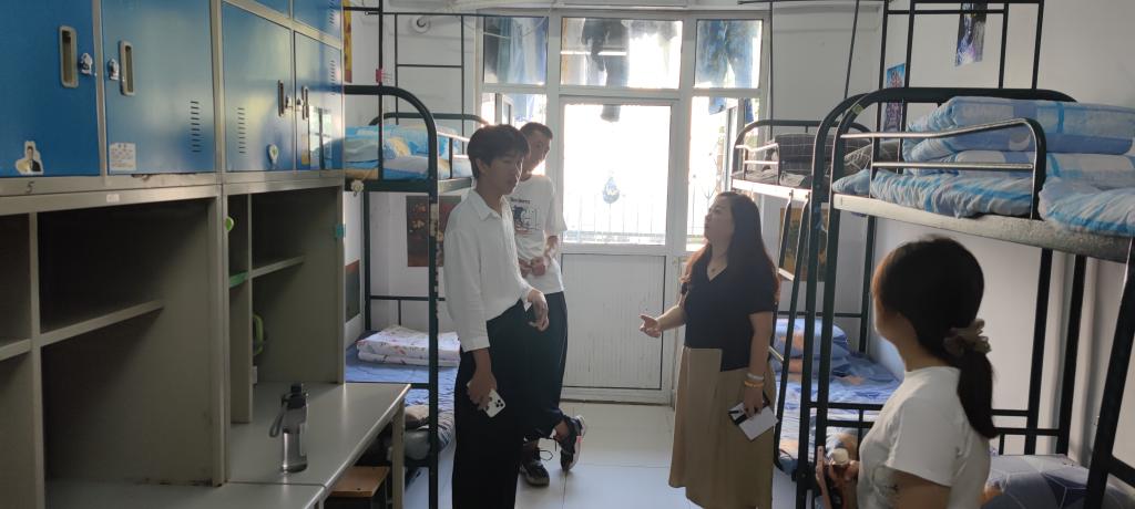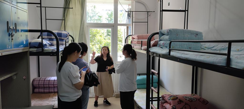 党总支副书记宋凌云、团总支书记刘凯以及部分学生干部分别对新生班级部分宿舍进行了走访、检查,对于在被子叠放、宿舍死角卫生等状况进行了指导和建议,要求卫生不达标的宿舍尽快整改,同时也对卫生状况优秀的宿舍给予了肯定和表扬。最后评选了52104、52304、52501和21215、21516、21517宿舍为样板间宿舍。