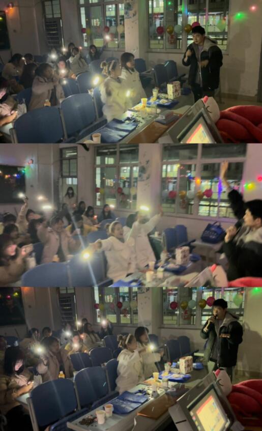 21新生精心布置现场,认真准备节目,晚会现场也是百花齐放,舞蹈、歌曲、吉他独奏、小品等风格各式的节目,点燃了现场气氛,同学们的阵阵掌声,台上演员精心准备的节目,将晚会氛围一次次推向了高潮。各班辅导员也在晚会现场也对大家在过去的一学期紧张有序的成长历程以及所取得的成绩表示祝贺,感谢全体同学为此付出的不懈努力和坚持,同时也对同学们寄予厚望,勉励大家在新的一年里继续努力前行,共同开启学习生涯的新篇章。同学们听后深受鼓舞,更加坚定了自己继续拼搏、勇往直前的信念。