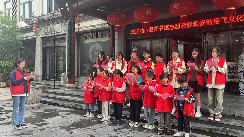 为弘扬中华民族传统思想精神,宣传爱国主义思想。9月24日,肥西县图书馆组织辖区50余名青少年在岳飞文化馆参加“寻找”岳飞之旅科普活动,寻觅岳飞生平事迹,进行了一次弘扬岳飞精神的特别之旅,文化创意学院作为协办单位组织学生一同参观并开展社会志愿服务活动。
