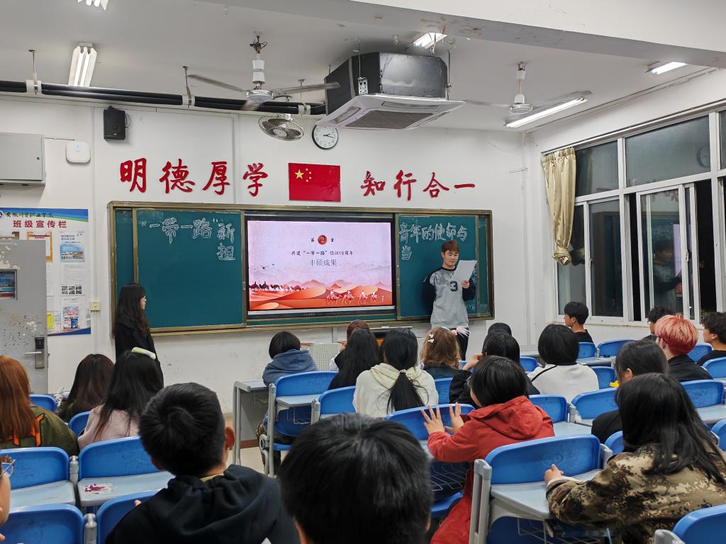 在共建“一带一路”倡议提出十周年之际,为进一步增强青年勇于担当时代重任的责任感,自觉传承实现中华民族伟大复兴的时代使命。10月25日晚,文化创意学院团总支组织各班团支部开展“‘一带一路’,新青年的使命与担当”主题时政活动。