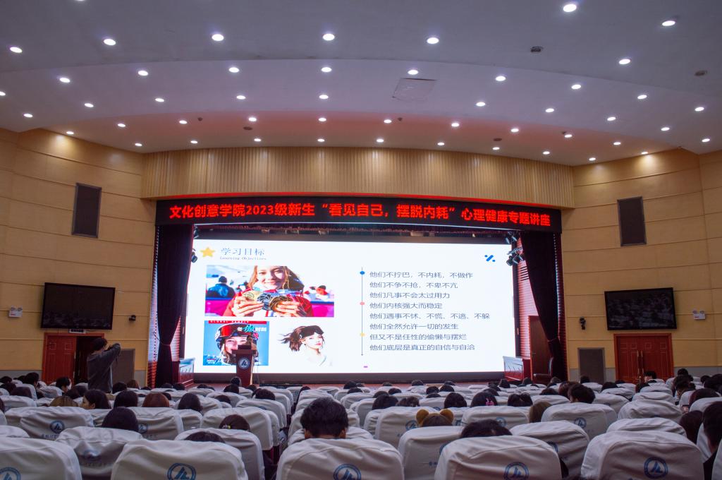 为进一步加强对学生的心理健康教育,培养学生健全的人格和良好的心理品质,11月22日,文化创意学院举办2023级新生“看见自己,摆脱内耗”心理健康专题讲座,此次讲座由心理健康教育中心王思老师主讲。
